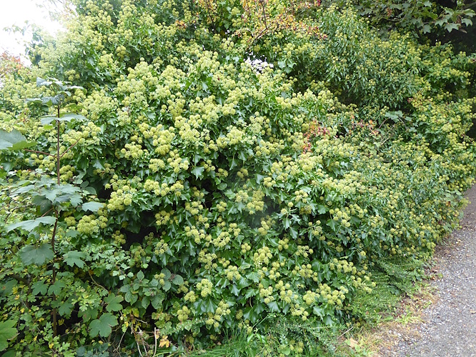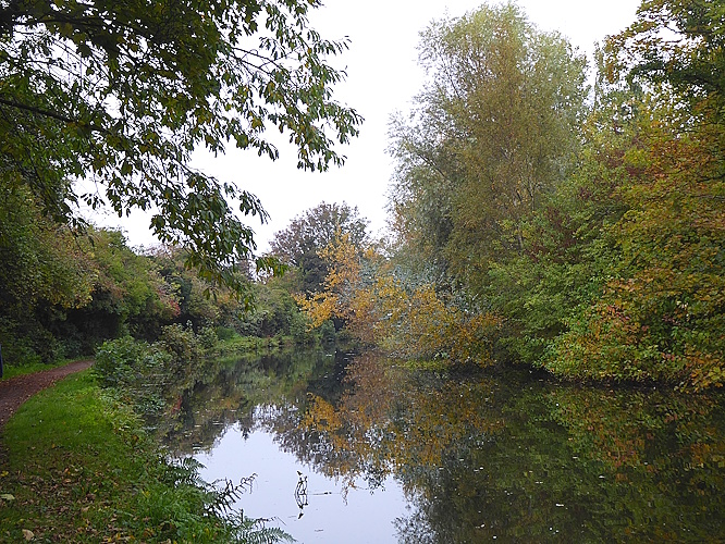 This stretch of the canal, northwards to Maghull town centre, had huge ivy bushes, and some large swathes overhanging from tall trees, and all were coming into flower. We could smell the perfume of them as we passed. But since the sun still wasn’t out there were hardly any flying insects around them. On sunny warmer days in autumn you often see Ivy bushes all abuzz with bees, wasps, hoverflies and smaller flying creatures, all getting a last good feed in before the winter.