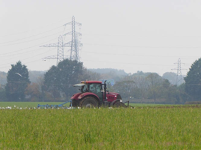 For much of the day we had the towpath to ourselves, occasionally moving aside for dog walkers, runners and cyclists. The canal was lined with Hawthorn bushes, all heavily berried, and a few Ash trees with huge bunches of seed. Agricultural land dominated on the left (west) side, and flocks of gulls were following the plough.