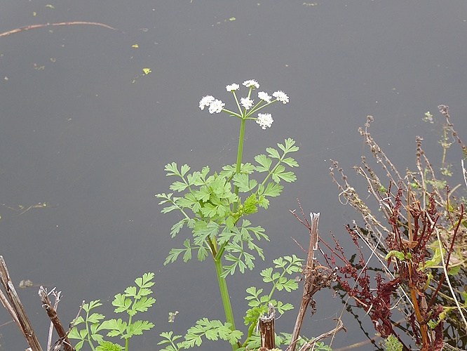 Several plants were still flowering at the edge of the path, including Cow Parsley, Hogweed, Michaelmas Daisies, Bindweed, White Dead-nettle, and another flush of Bramble flowers. Prominent “gone-to-seed” plants included Old Mans Beard and Rose Bay Willowherb. In or close to the water were some more unusual species, like Gipsywort, what might have been the very poisonous Hemlock Water Dropwort, and Arrowhead springing straight from the water.