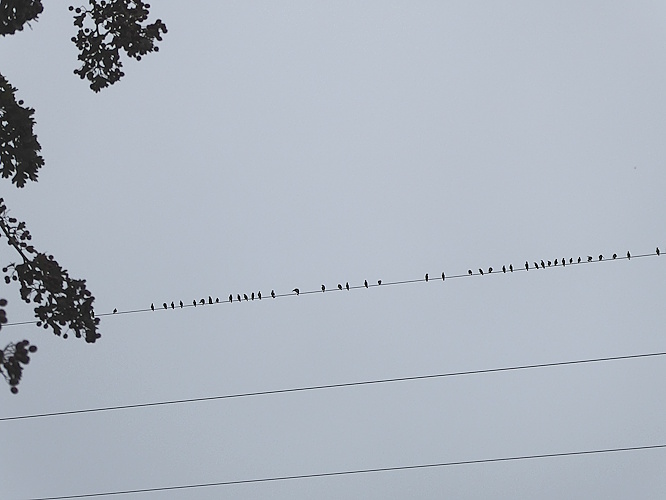 On the water were Moorhens, Coots and Mallards, looking very smart in their new plumage and starting to pair up. There were House Sparrows on the roofs of the new houses on the right (east) side, together with Robins, a Dunnock and Goldfinches in the bushes. A Buzzard drifted overhead, then was chased off by smaller birds. A handful of Jackdaws flew southwards, Rooks flew off the horse fields and Crows called from all directions. A Collared Dove perched high in a tree, two Pheasants moved about in a field and a hundred or so Starlings flocked up to perch on electricity wires.