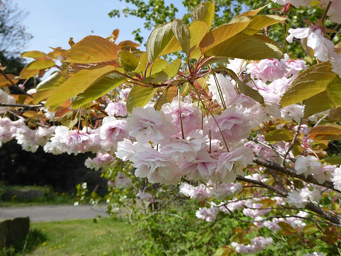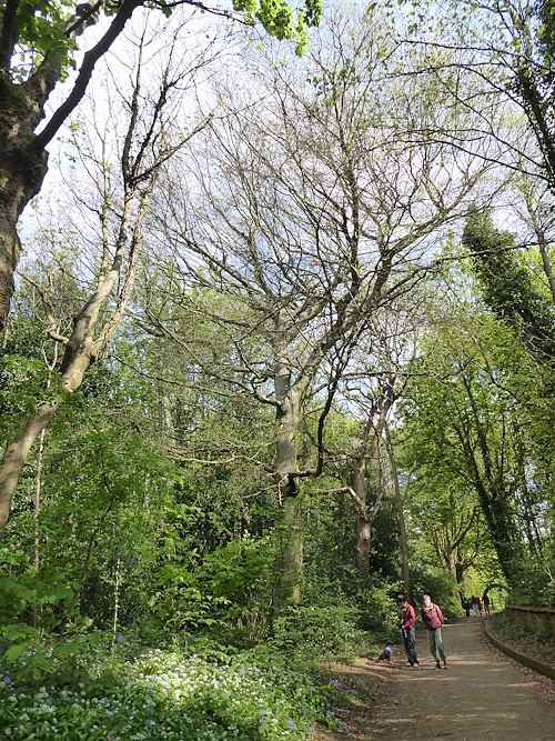 Wallasey Central Park is a medium-sized and pretty park near Liscard. The wooded edge along Liscard Road had a Chiffchaff calling, a Blackbird and several Wood Pigeons. Small White butterflies were about, and there were clumps of Spanish Bluebells scattered among the trees. Next to the old church called Egremont St John there appears to be a tree nursery, with small shrub-sized trees planted in straight rows – Whitebeam, Hawthorn, Rowan, Horse Chestnut, Scots Pine, Oak and Field Maple. In the main park many trees were in flower. Cherry and Crab Apple with their brightly-coloured blossom are obvious, but many trees have green flowers that look at first glance like they are leaves. An example is Wych Elm, which has no leaves yet, but is fully clothed in immature winged fruit. The seed is the little bump in the centre of the wing.