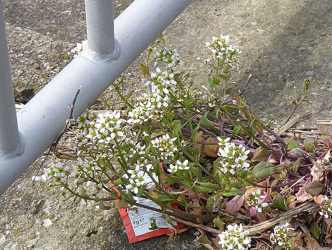 Also this very worn and damaged Small Tortoiseshell, resting on the pathway. It was alive despite its battered appearance, because it stirred and flew off strongly to another resting place. It must have overwintered as an adult, possibly in an allotment shed. It ought to have mated and laid eggs by now, but looks like it can’t be long for this world.