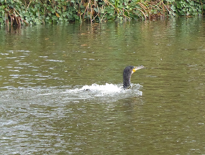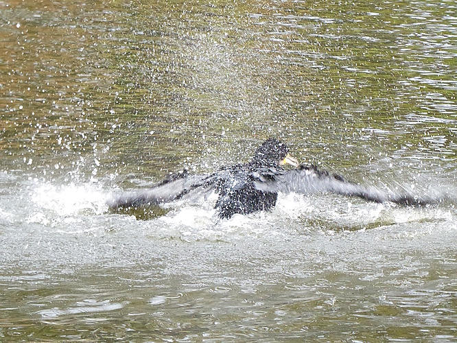 On the lake there were Mallards, Coots, Moorhens and Black-headed Gulls, but no Canada Geese, which are usually resident. One surprises was a single Cormorant, which appeared to be taking a bath. It flapped vigorously, churning up the water, then waggled its back end forcefully. After a second or two swimming around, it did it again, and then again …  I have never seen that before.
