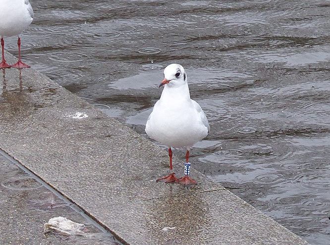 There were also 7 Black-headed Gulls. On previous visits John had noticed a couple of ringed ones but had never been able to get their numbers. He lured them out of the water with food and I looked for the numbers. They were later reported via the website of the Waterbird Colour-marking group