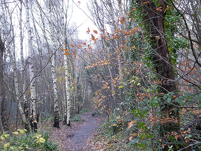 At Ormskirk we turned left out of the station, past the car park and into 7 acres of mixed woodland called Station Approach. It used to be sidings and a branch line to Skelmersdale, but it was closed in 1974, reclaimed by nature and now tidied up as a small woodland park.