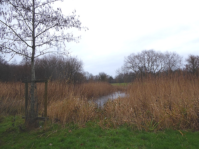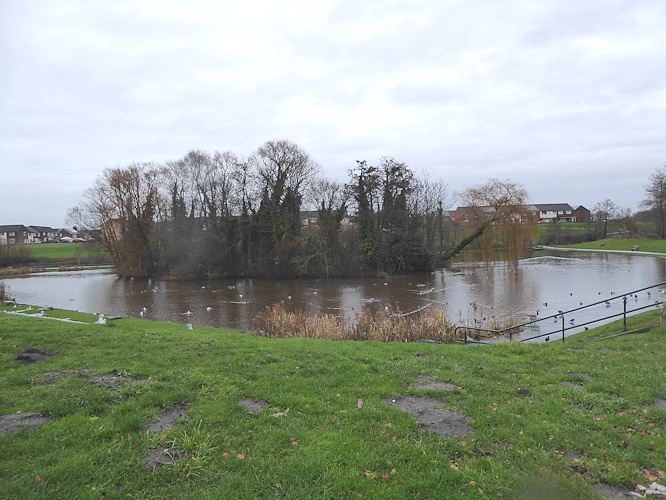 At the northern end of the park a Buzzard floated over the railway embankment. We emerged at the junction of Mill Lane and Boyes Brow, and although we were heading for Headbolt Lane station, we took a detour into Mill Dam Park, a new one for us. It is really just a lake with an island, surrounded by grassy banks. We saw the usual Mallards, Coots and Moorhen, with one Canada Goose, a Cormorant up a tree and a few Black-headed Gulls.