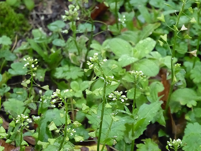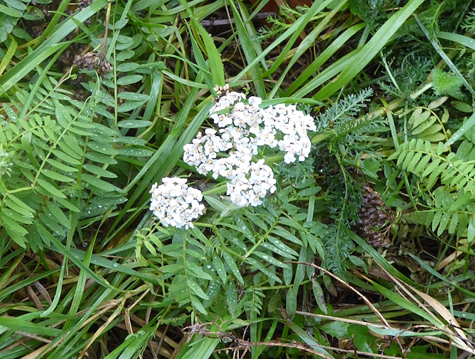 The path to the station seemed to be flanked by a gone-over wildflower meadow, although some things were still blooming. White Dead-nettle, a large half-gone Daisy that might have been an Ox-eye, Yarrow (above) and Shepherd’s Purse below, with its heart-shaped seed cases.