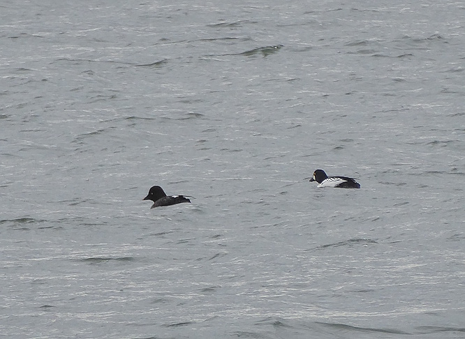 There were also reputed to be a Red-breasted Merganser, a female Goosander and a Scaup hanging about on the lake, but although we saw the Merganser fleetingly, just once, it then dived and completely disappeared. The Goosander was elusive and the Scaup didn’t put in an appearance at all. But as compensation we spotted a pair of Goldeneye out in the middle, sometimes joined by a juvenile.