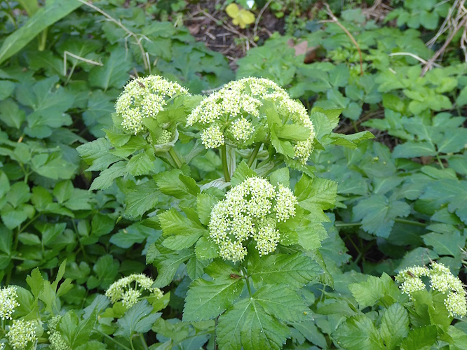 We turned on to the last bit of the Wirral Way, and spotted a Great Tit and a Robin. One plant of Green Alkanet was in flower, and Alexanders was shooting up all along. Some were just starting to flower.