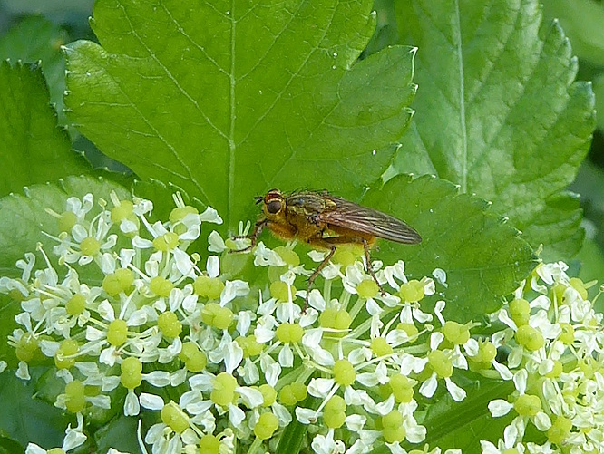 One of the Alexanders had a couple of flies basking, which turned out to be the common and widespread Yellow Dung Fly Scathophaga stercoraria.
