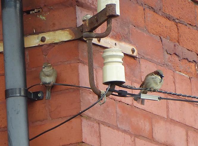 We stopped in Coronation Gardens for lunch. It’s a sheltered little spot with several flowers out in the wintry beds: Three-cornered Leek, tall Jonquils, Rosemary, Hellebore and one of the Sow-thistles. There was also a small patch of Daisies in the grass. On the Banks Road side was a small flock of Starlings and a row of Holly trees, from which House Sparrows were cheeping. Two of the Sparrows appeared to be investigating a hole in the eaves of a house nearby, and perching on the telephone wires.