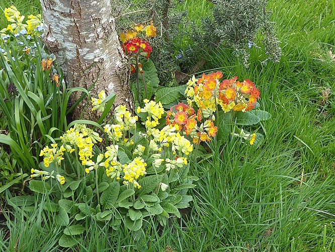 Primroses and Cowslips have been planted below some memorial trees, and some appear to be naturalising in the grass.