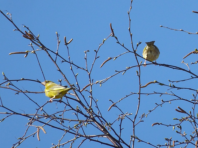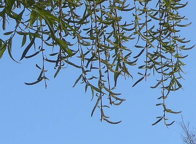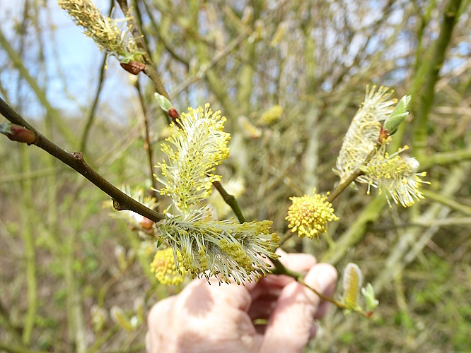 The Willow catkins were going over on the male trees and the flowers on the female trees were setting seed.