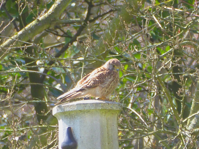 A Kestrel swooped into the Commonwealth War Graves Commission area and perched on top of the Cross of Sacrifice, looking closely at the ground all around.