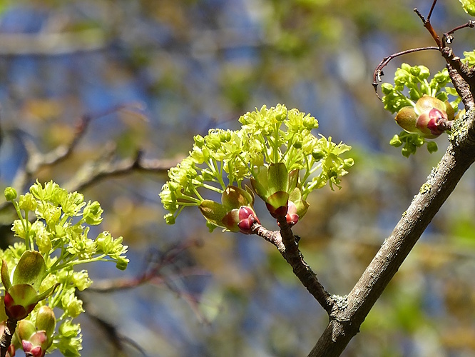 The Norway Maples are all in flower.